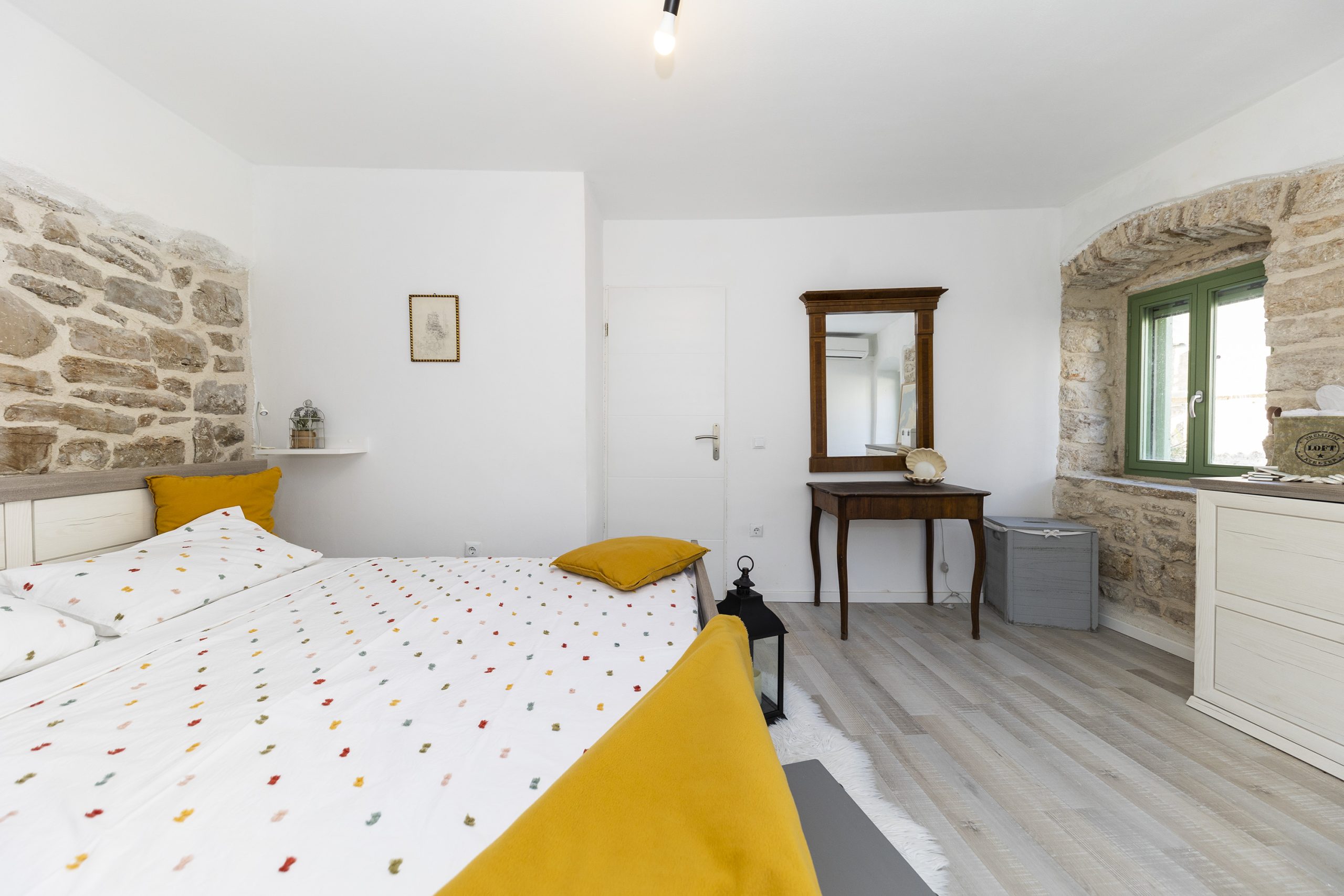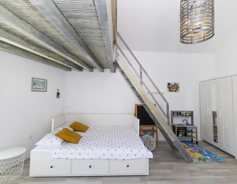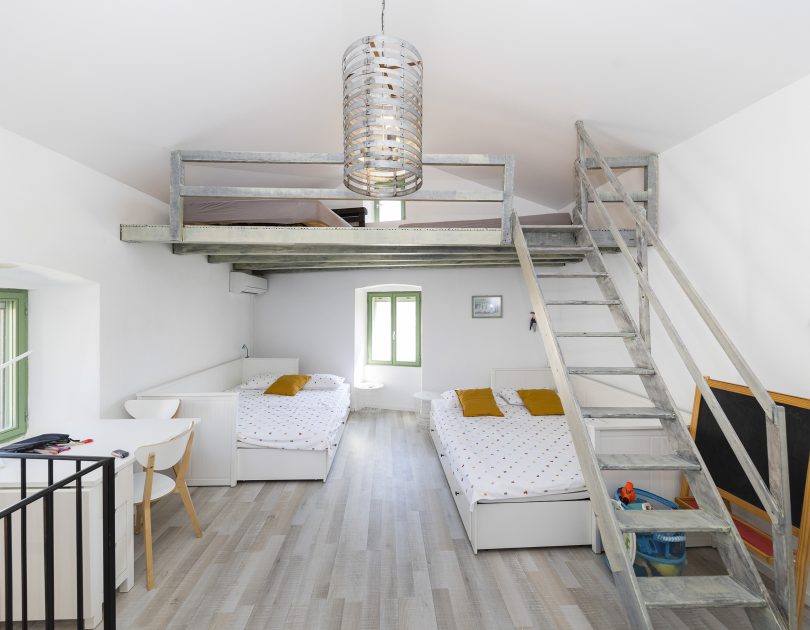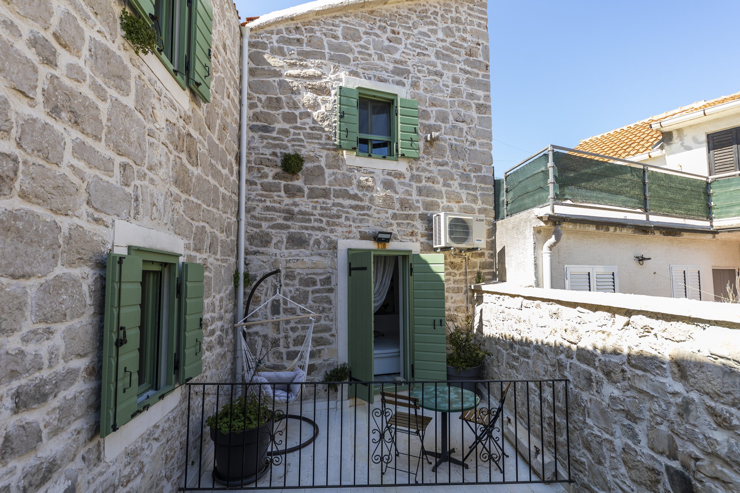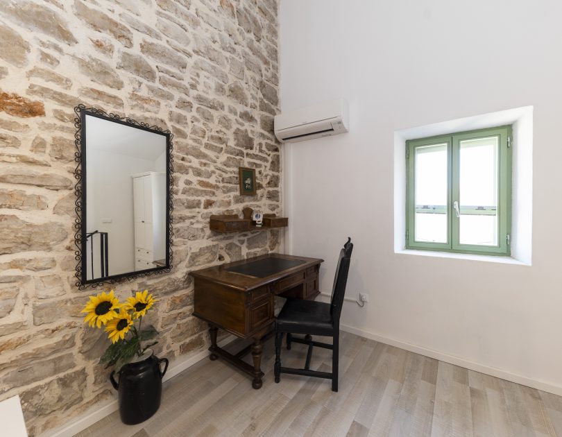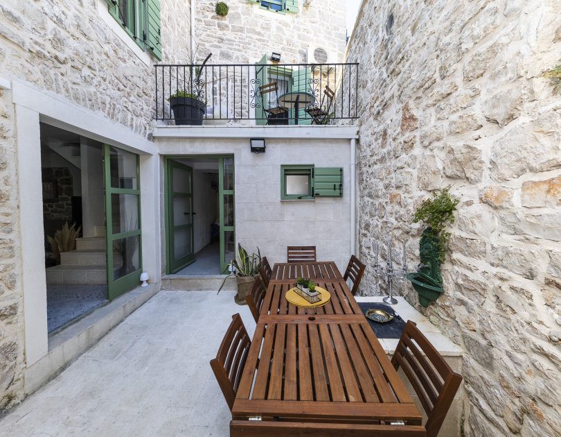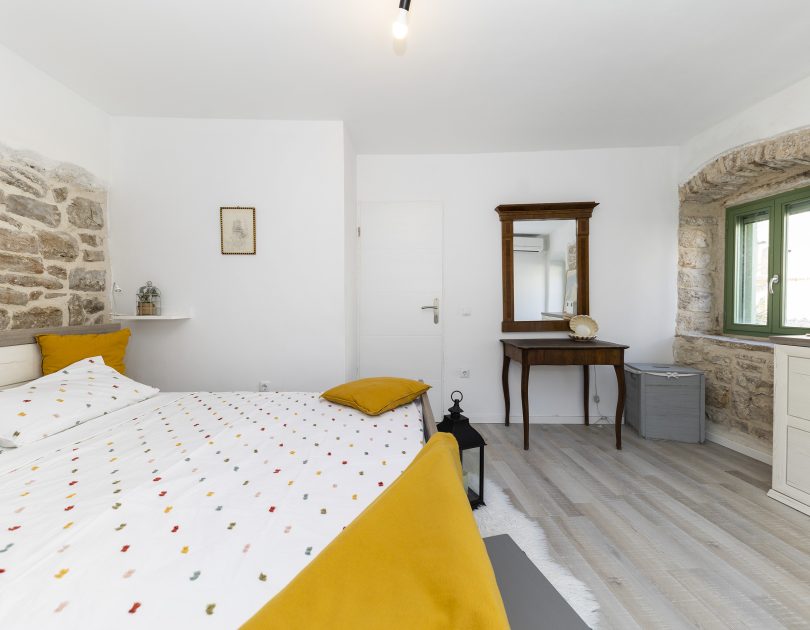 Renovirana autohtona kamena kuća smještajnog kapaciteta do 14 ljudi koncipirana je kao vila sa dvije zasebne jedinice sa zajedničkim dvorištem, dok svaka jedinica ima vlastiti ulaz što je čini idealnom za mnogočlane obitelji ili društvo od više parova. Svaka jedinica ima vlastitu kuhinju, kupaonu i WC i spavaće sobe te u svakoj možete imati vlastiti mir ili kutak za sebe, a opet istovremeno uživati u zajedničkom odmoru sa obitelji ili prijateljima.