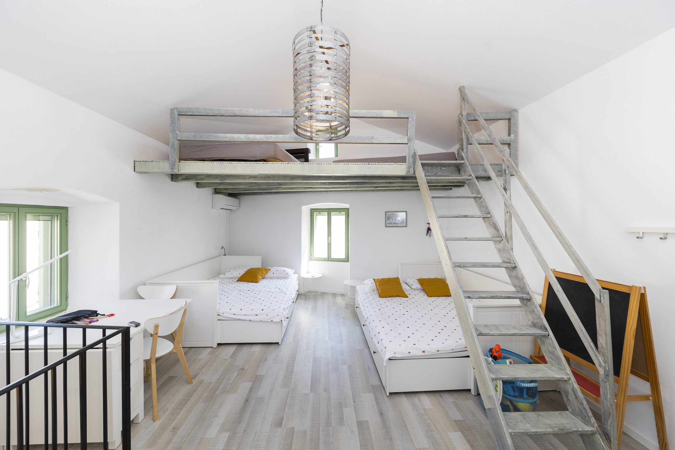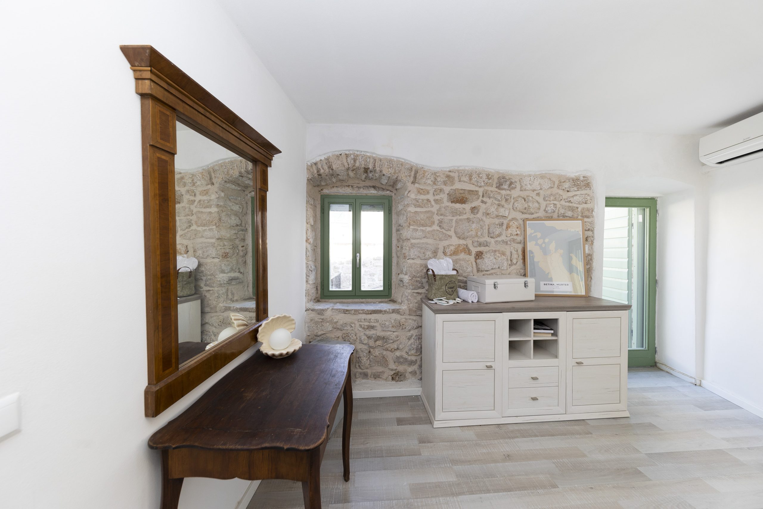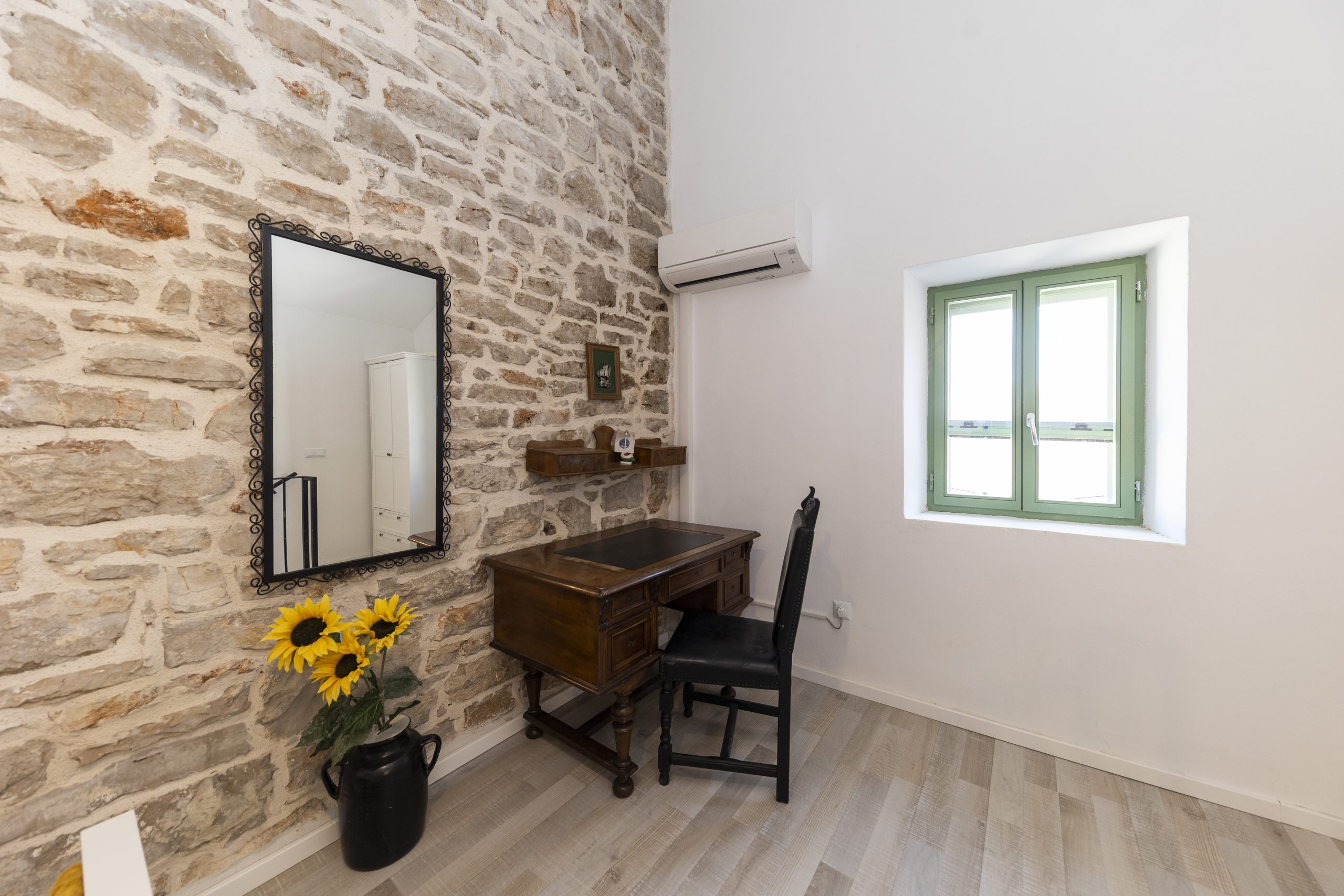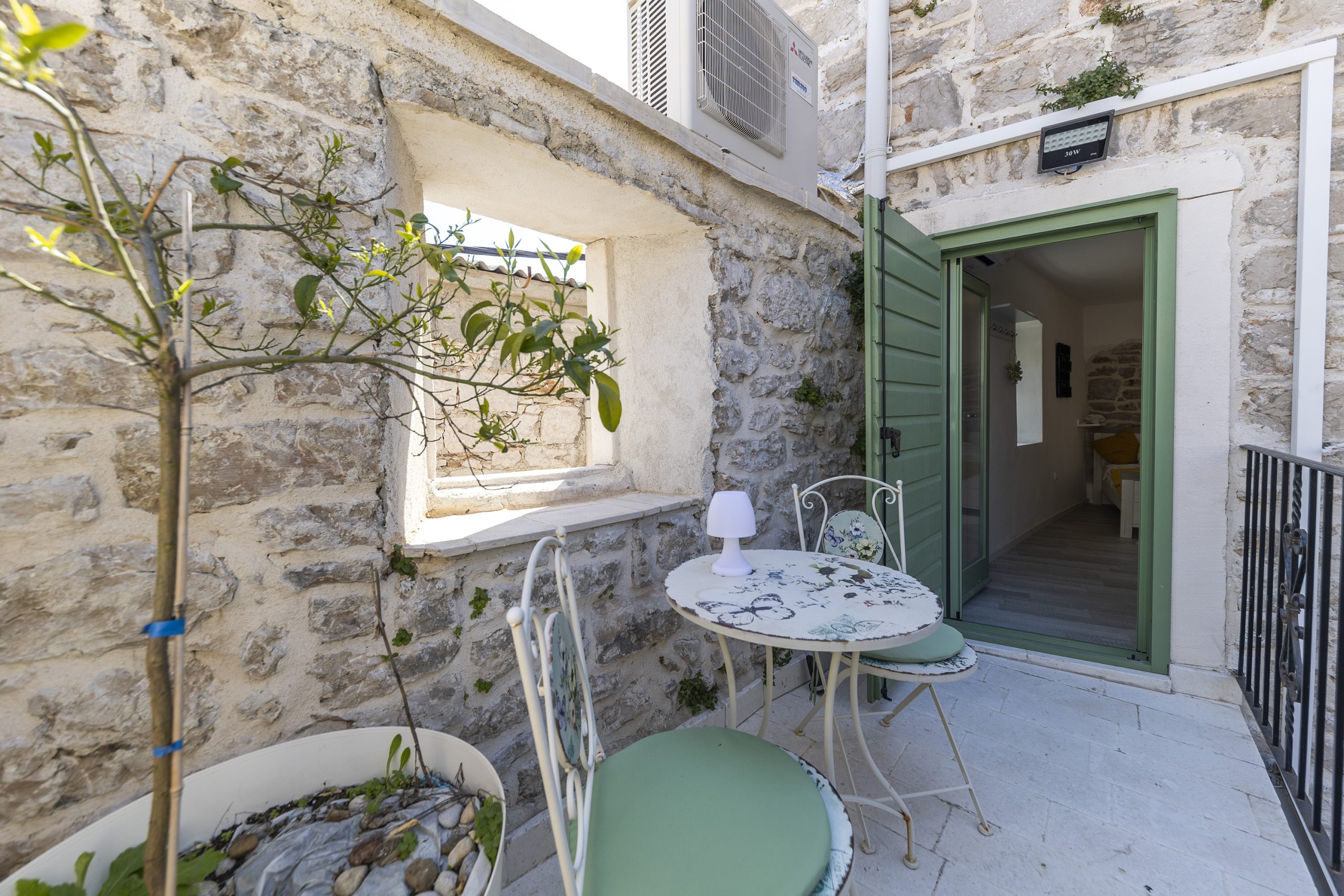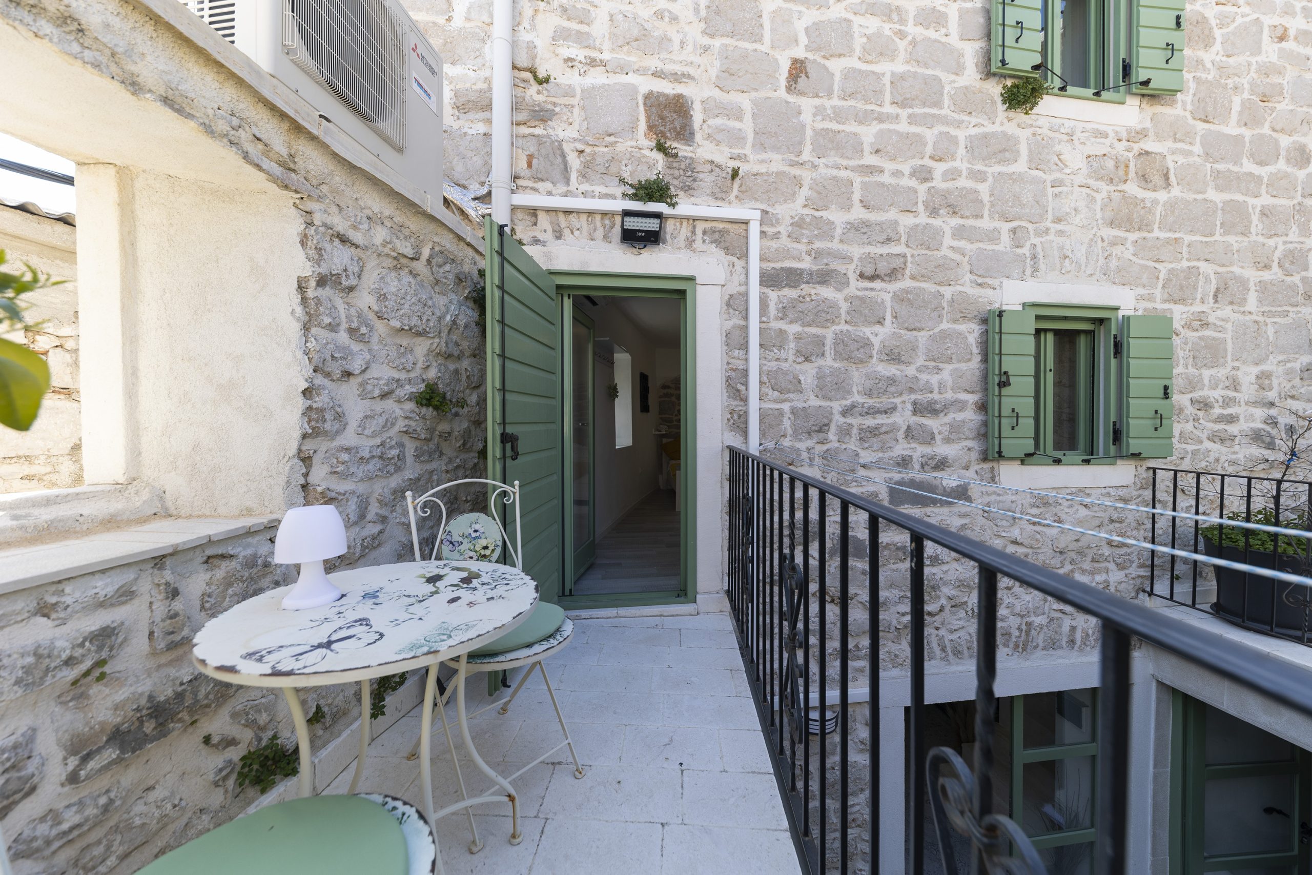 Renovirana autohtona kamena kuća smještajnog kapaciteta do 14 ljudi koncipirana je kao vila sa dvije zasebne jedinice sa zajedničkim dvorištem, dok svaka jedinica ima vlastiti ulaz što je čini idealnom za mnogočlane obitelji ili društvo od više parova. Svaka jedinica ima vlastitu kuhinju, kupaonu i WC i spavaće sobe te u svakoj možete imati vlastiti mir ili kutak za sebe, a opet istovremeno uživati u zajedničkom odmoru sa obitelji ili prijateljima.